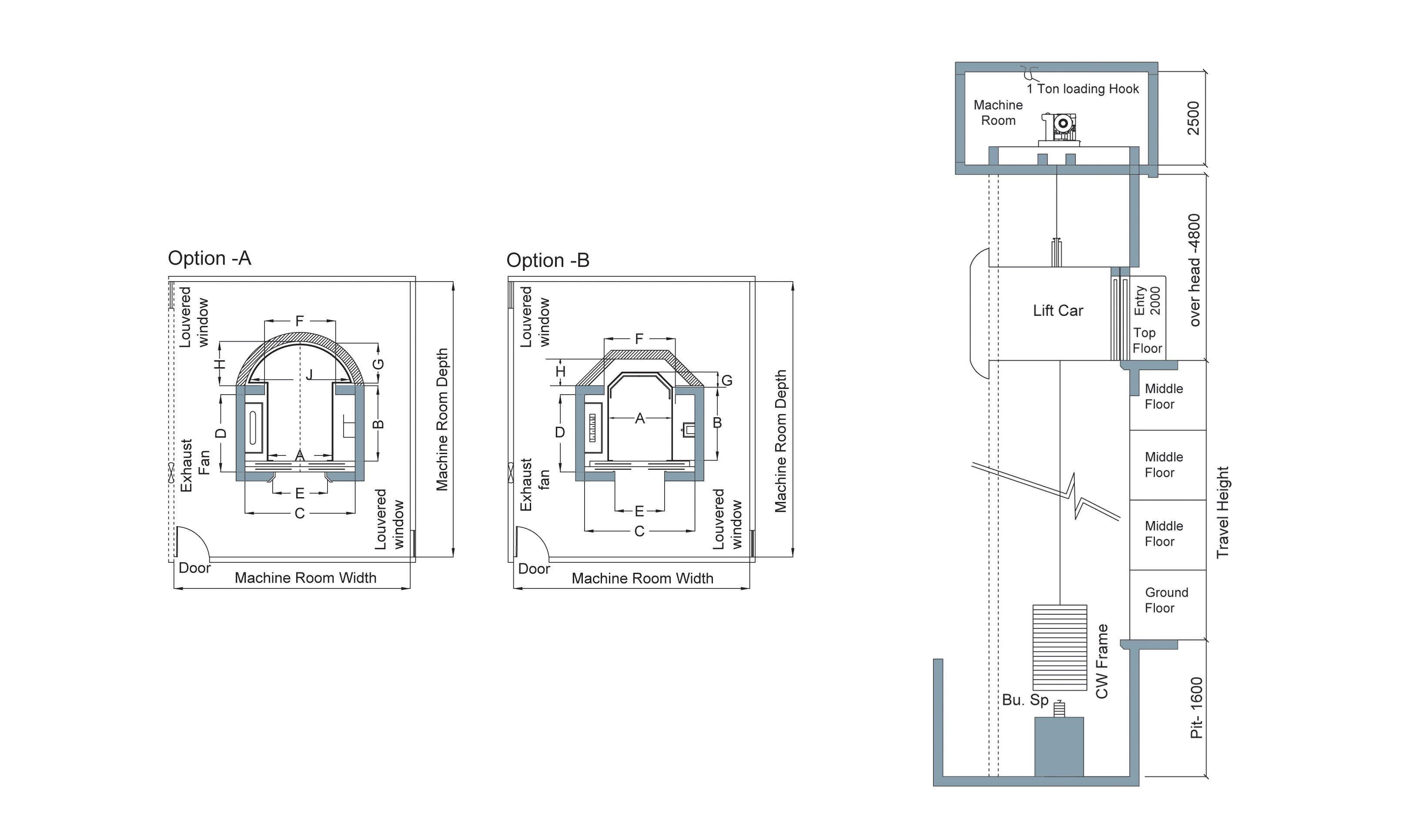 根据机房位置可选配曳引式或液压式驱动系统