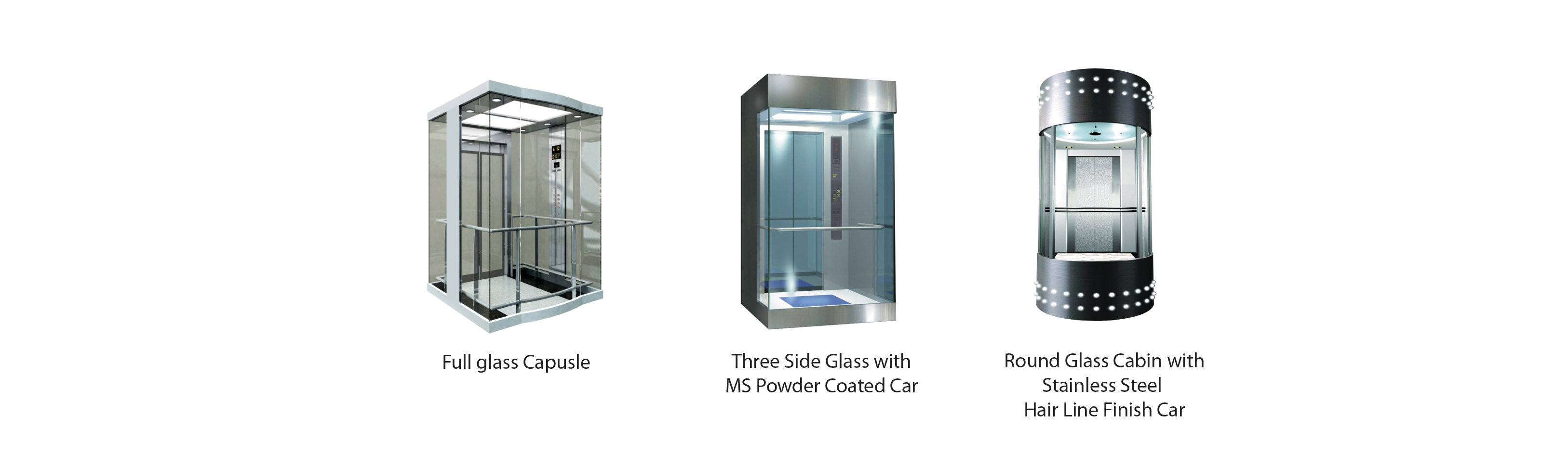 | 轿厢装饰 | 玻璃搭配粉末喷涂碳钢轿厢 玻璃搭配拉丝不锈钢轿厢 玻璃搭配设计款钢制拉丝轿厢 |
